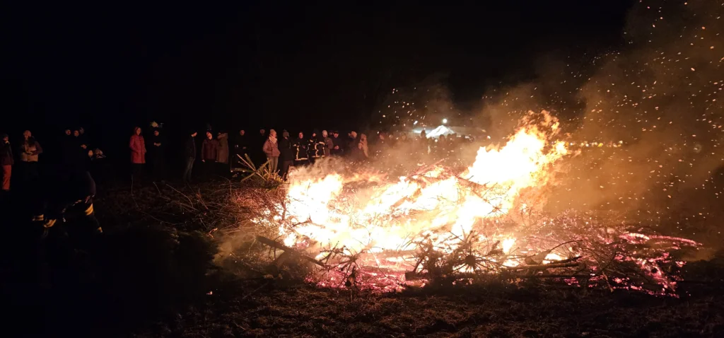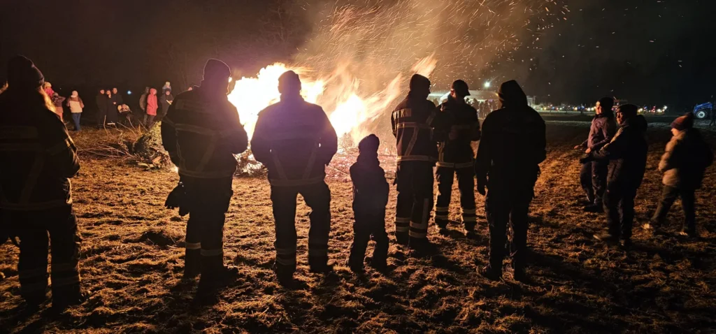 Am Abend wurden die gesammelten Bäume ab 17 Uhr feierlich verbrannt. Viele Bürgerinnen und Bürger nutzten die Gelegenheit, gemeinsam in das neue Jahr zu starten und in gemütlicher Atmosphäre beisammenzustehen. Für die Kinder wurde warmer Punsch angeboten, während die Erwachsenen Glühwein, Bratwurst und belegte Brote genießen konnten.