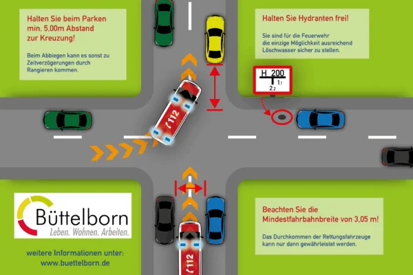 Immer wieder kommt es dazu, dass Rettungsfahrzeuge nicht zur Einsatzstelle fahren können, da parkende Fahrzeuge die Durchfahrt versperren. Hierdurch können wertvolle, lebensrettende Minuten verloren gehen.